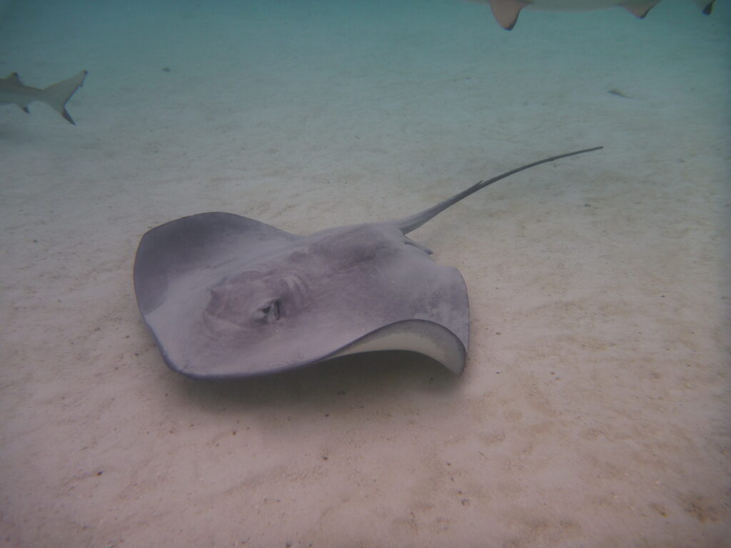 アカエイは砂の中に潜んで隠れていることが多いです。知らずに素足で入っていくと踏んでしまうこともあります。毒トゲを持っており、刺されると激痛が走り、重篤な場合はショック死することもあります。刺された場合は火傷しない程度のお湯に30分ほどつけて毒を中和しましょう。症状が重い場合は病院に行きましょう。