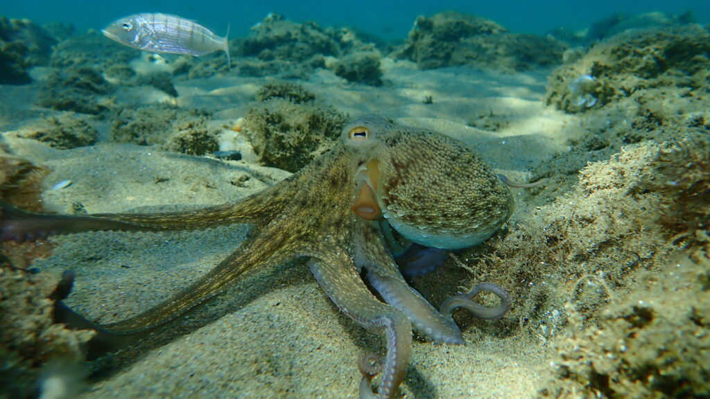 マダコは一般的に知られているタコですが、海で遭遇すると危険です。口にある歯は非常に鋭く、噛まれると皮膚がえぐれて大出血します。釣ったり網で捕ったりした場合は手で触らずに注意しましょう。噛まれた場合は止血して病院に行きましょう。