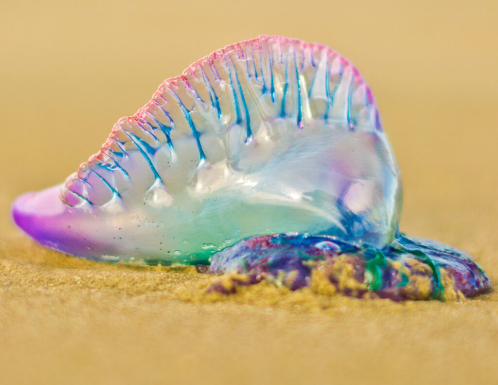 カツオノエボシはクラゲの中でも最も毒性が強いと言われています。毒針を持っており、刺されると激痛が走り、重篤な場合はショック死することもあります。刺された場合は水で洗わずにビニール袋などで触手を取り除きましょう。症状が重い場合は病院に行きましょう。